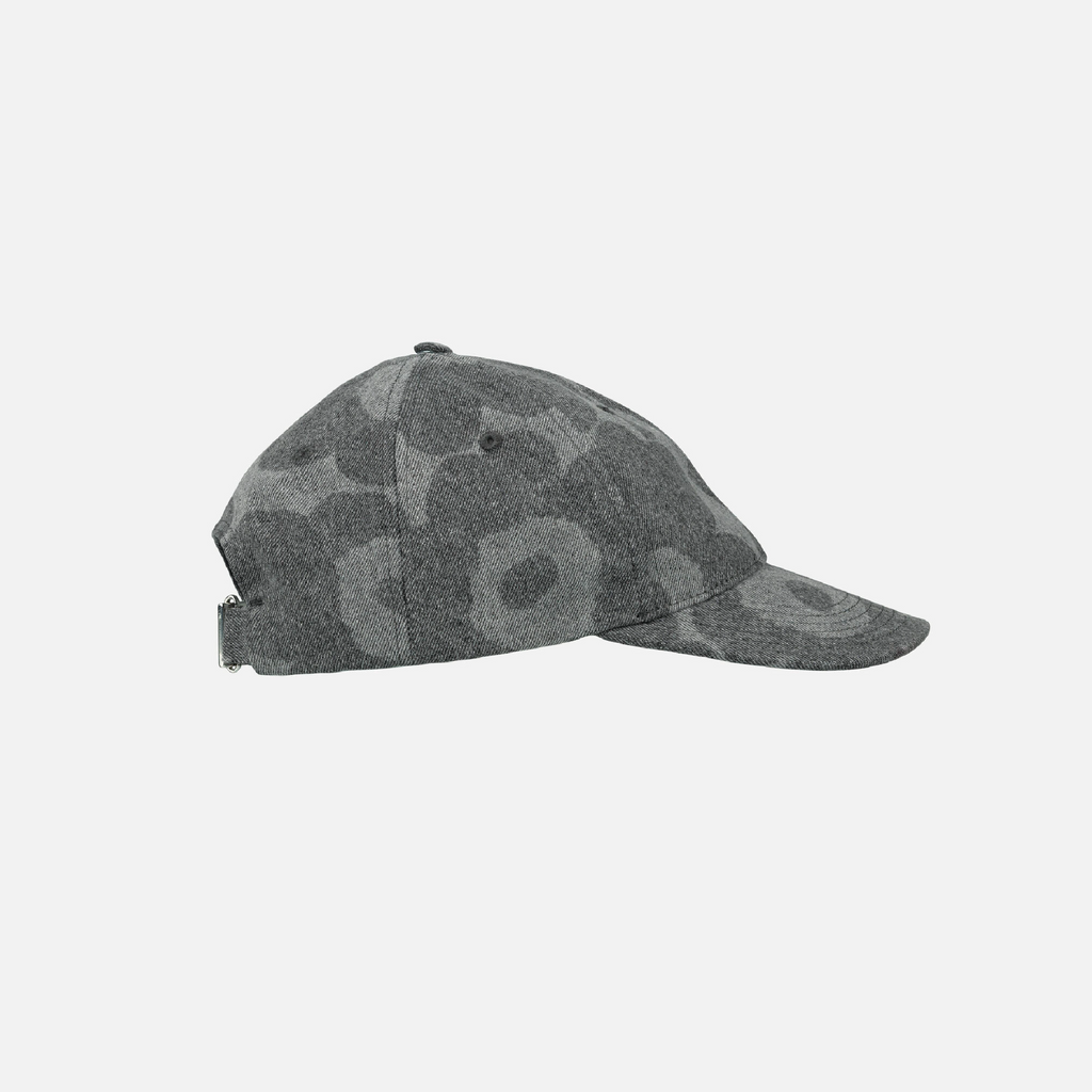 The Säkeistö baseball cap is made of cotton denim in the Unikko pattern. The cap can be adjusted in the back for a comfortable fit.