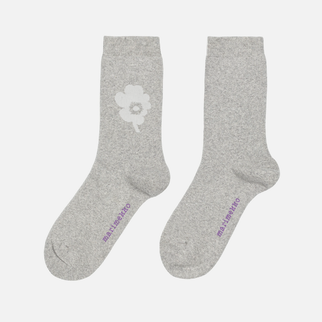 The Pirtti ankle socks are made of a cotton blend terry knit and they feature flowers from the Unikko pattern in the front.