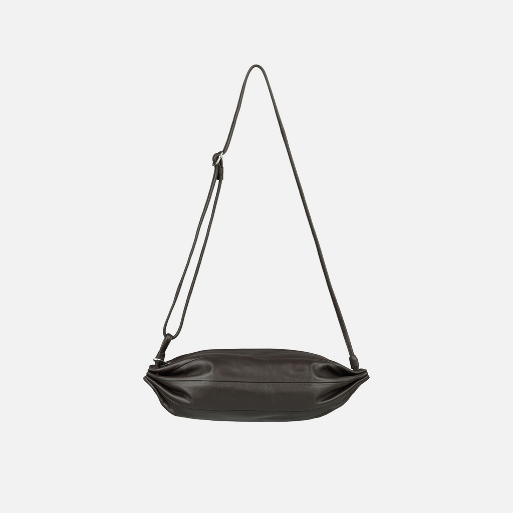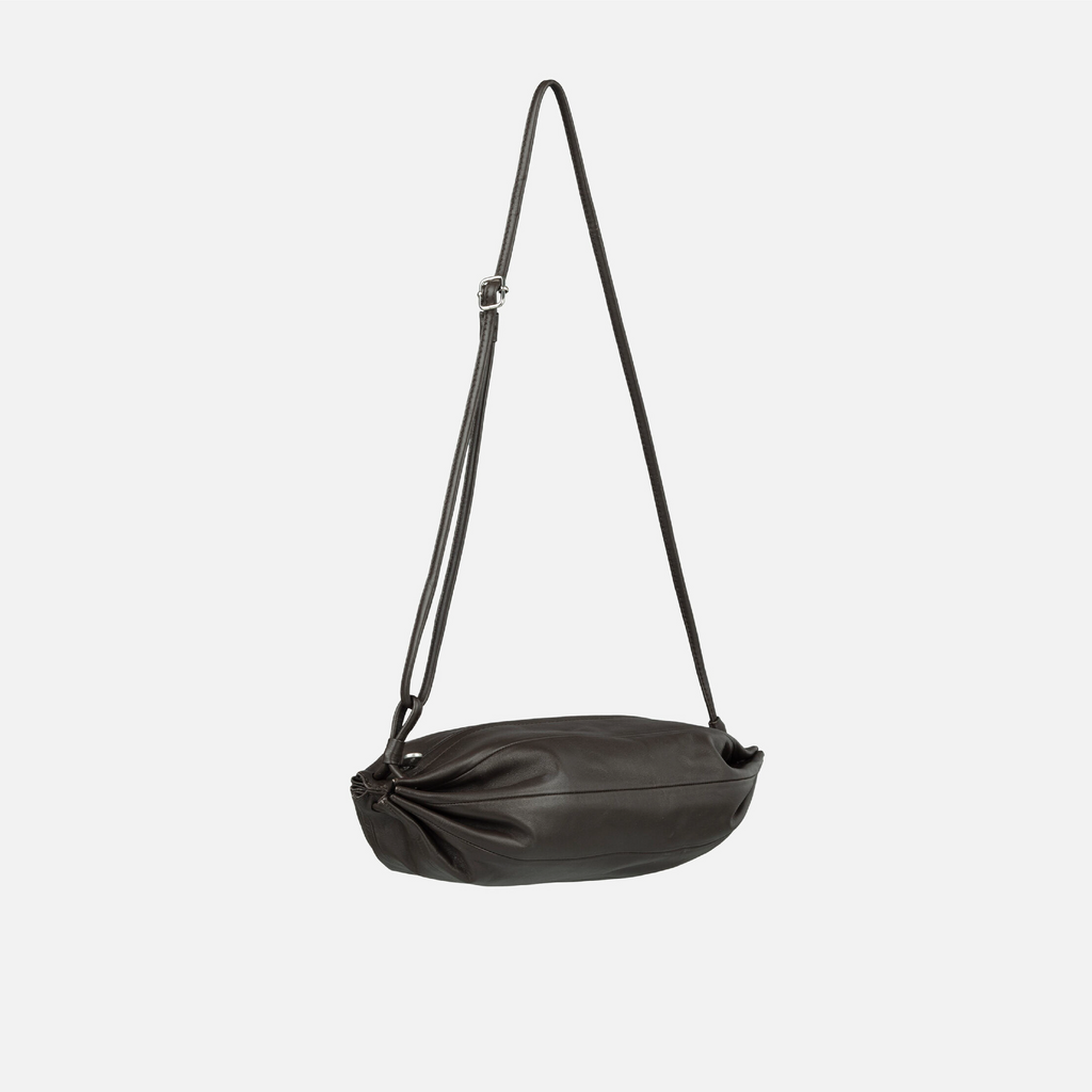 KKarla is a modern twist on a classic sweet—this bag was inspired by the eye-catching form of a candy wrapper. The Karla bag is made of leather, and it has an adjustable shoulder strap with a metallic buckle, a zipper closure, and a zipper pocket on the inside.