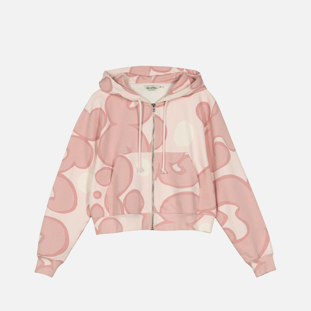 The cropped Joggi hoodie has a relaxed fit and it features the Keidas pattern. The hoodie has a drawstring hood, a zipper closure, front pockets, and ribbing at the sleeve ends and hemline.