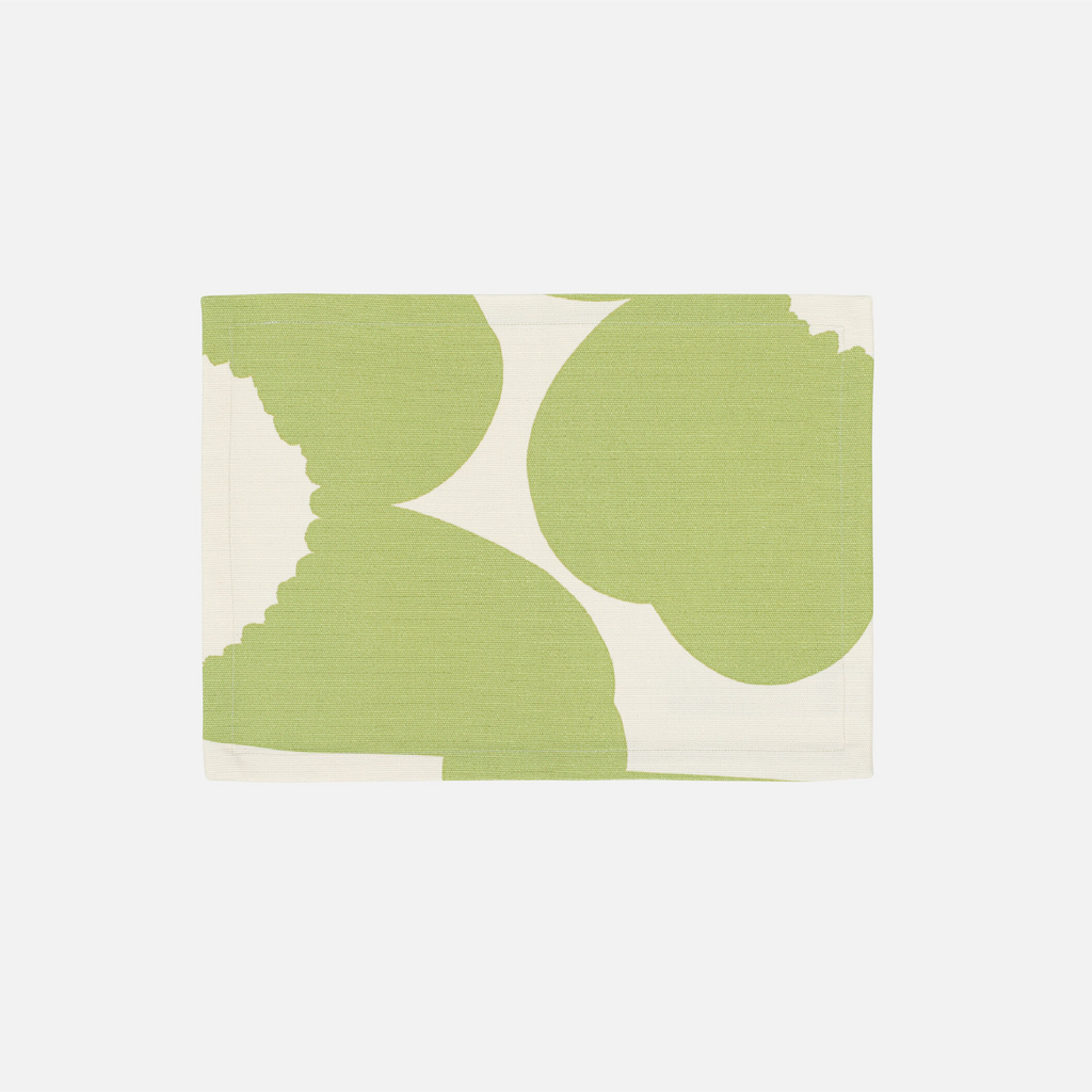 This fabric placemat features the Iso Unikko pattern, which is printed in Helsinki. The edges of the placemat are finished and sewn onto the back side.