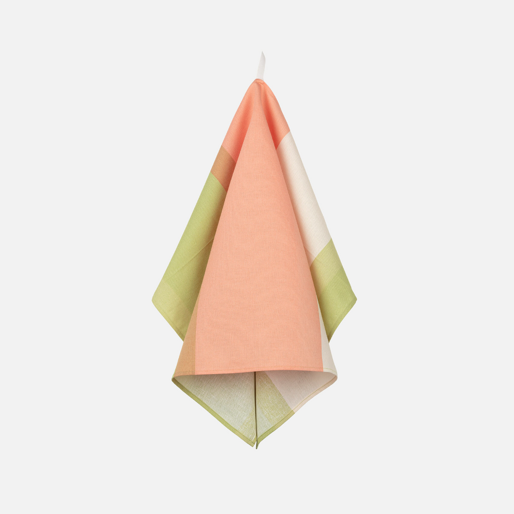 The Hennika pattern tea towel is printed in Helsinki, and it has a hanging loop on the long edge.