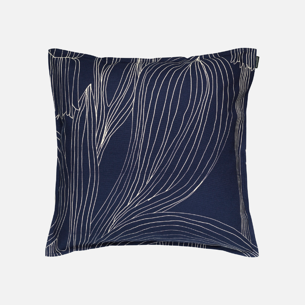 The Kukat Puhkeavat cushion cover has a zipper on one side and a narrow, flanged edge.