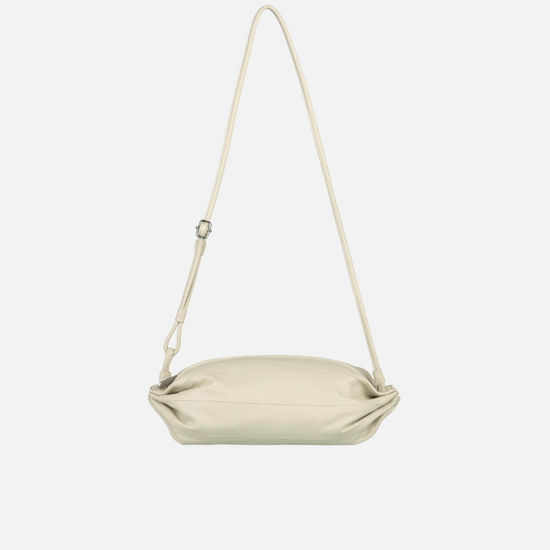 KKarla is a modern twist on a classic sweet—this bag was inspired by the eye-catching form of a candy wrapper. The Karla bag is made of leather, and it has an adjustable shoulder strap with a metallic buckle, a zipper closure, and a zipper pocket on the inside.