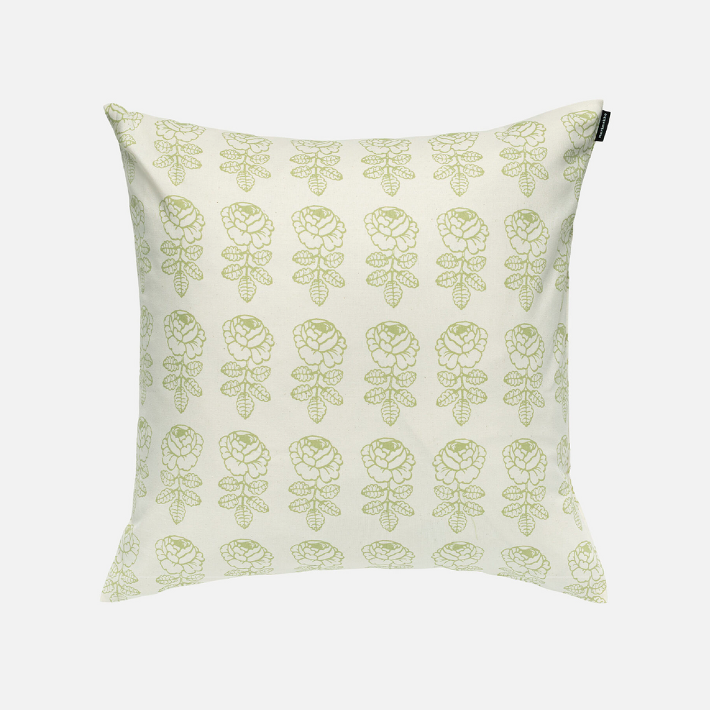 This cushion cover features the Vihkiruusu pattern, which is printed in Helsinki. The cover has a zipper on one side.
